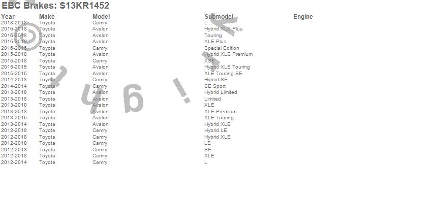 Below is an abbreviated list of applications for the S13 Kits Yellowstuff and RK Rotors.