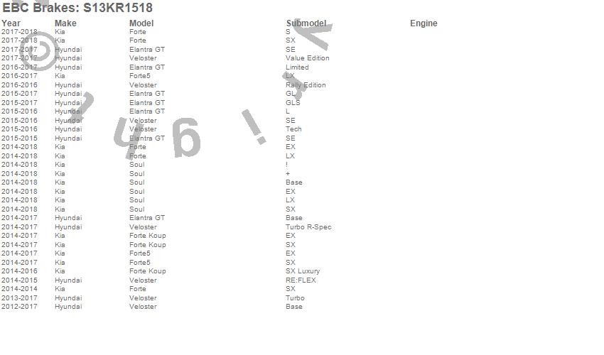 Below is an abbreviated list of applications for the S13 Kits Yellowstuff and RK Rotors.