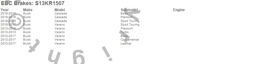 Below is an abbreviated list of applications for the S13 Kits Yellowstuff and RK Rotors.