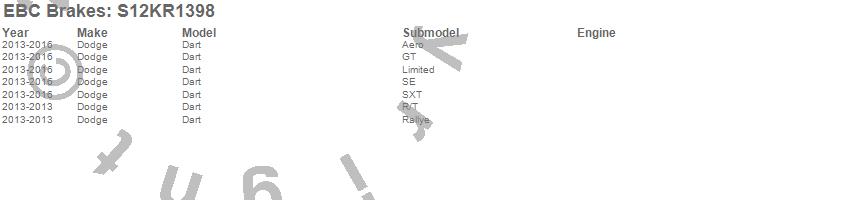 Below is an abbreviated list of applications for the S12 Kits Redstuff and RK Rotors.