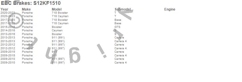 Below is an abbreviated list of applications for the S12 Kits Redstuff and RK Rotors.