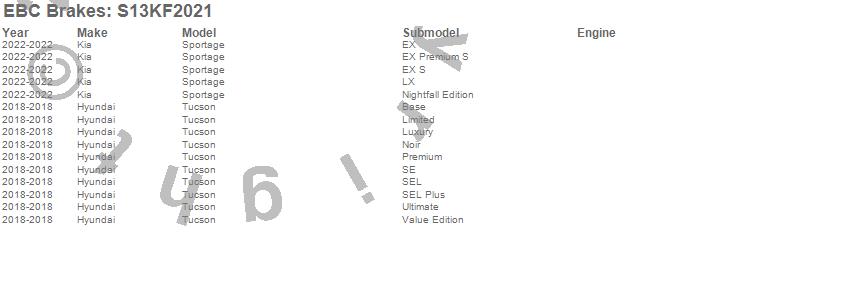 Below is an abbreviated list of applications for the S13 Kits Yellowstuff and RK Rotors.