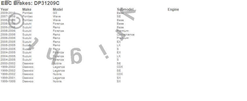 Forenza, G3, Leganza, Nubira, Reno, Wave, Daewoo, Pontiac, Suzuki, 2010, 2009, 2008, 2007, 2006, 2005, 2004, 2002, 2001, 2000, 1999
