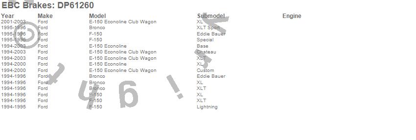 Below is an abbreviated list of applications for the 6000 Series Greenstuff Truck/SUV Brakes Disc Pads.
