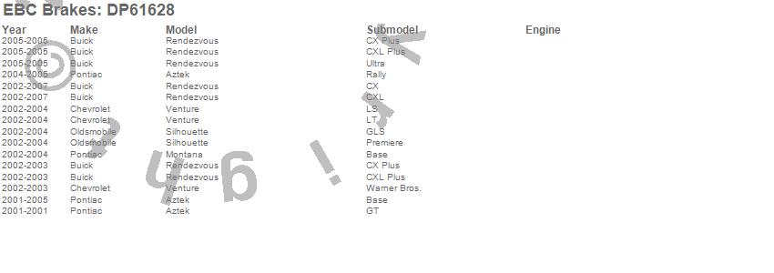 Below is an abbreviated list of applications for the 6000 Series Greenstuff Truck/SUV Brakes Disc Pads.