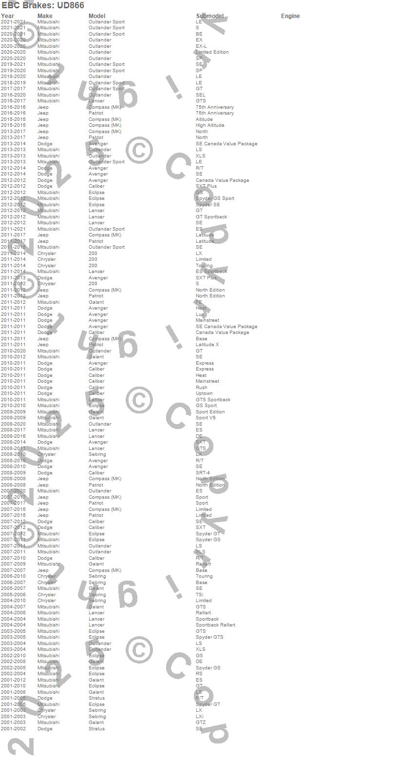 200, Avenger, Caliber, Compass, Eclipse, Galant, Lancer, Outlander, Outlander Sport, Patriot, Sebring, Stratus, Chrysler, Dodge, Jeep, Mitsubishi, 2021, 2020, 2019, 2018