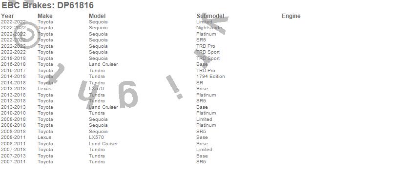 Below is an abbreviated list of applications for the 6000 Series Greenstuff Truck/SUV Brakes Disc Pads.
