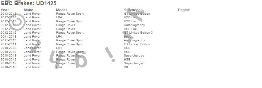EBC Brakes UD1425 Ultimax OEM Replacement Brake Pads FMSI Pad No. D1425 - Vented - 360mm Dia. - 82mm Height - 30mm Thick - 79mm Center Hole Dia. - Pad Dimensions: 192 x 71 x 18mm