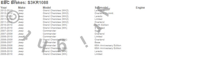Below is an abbreviated list of applications for the S3 Kits Greenstuff 6000 and GD Rotors Truck/SUV.