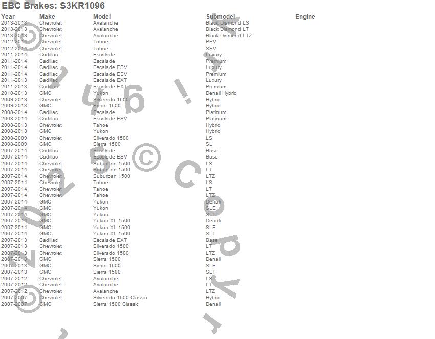 Below is an abbreviated list of applications for the S3 Kits Greenstuff 6000 and GD Rotors Truck/SUV.