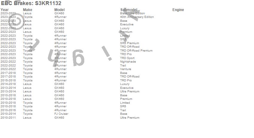 Below is an abbreviated list of applications for the S3 Kits Greenstuff 6000 and GD Rotors Truck/SUV.