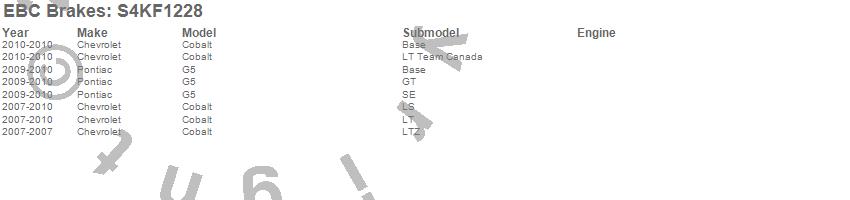 Below is an abbreviated list of applications for the S4 Kits Redstuff and USR Rotor.