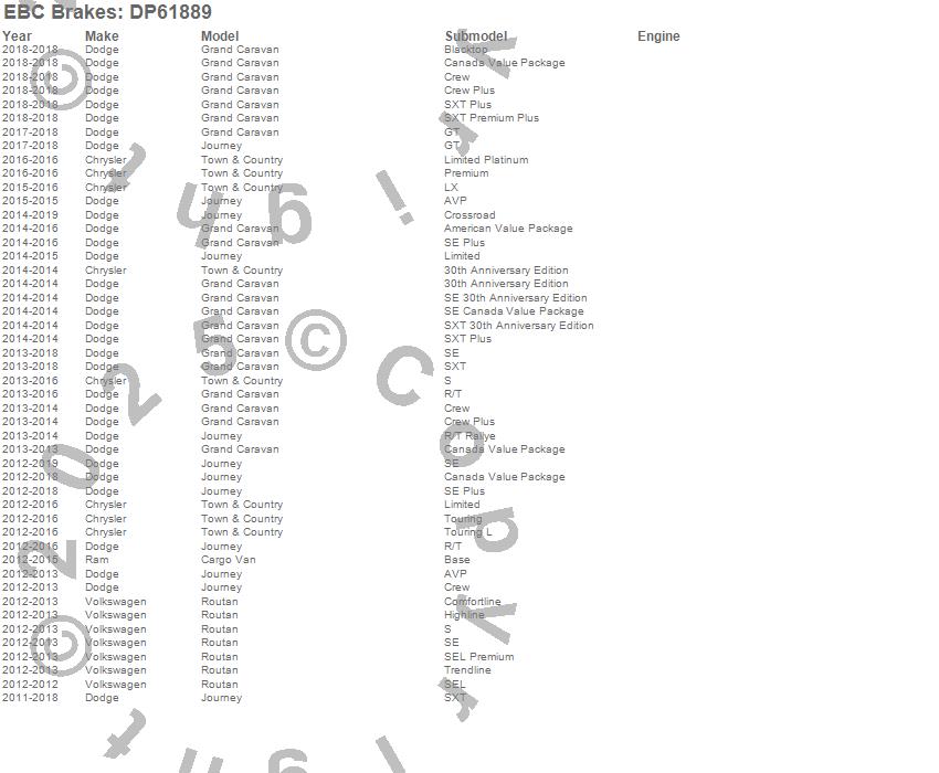 C/V, Grand Caravan, Journey, Routan, Town & Country, Chrysler, Dodge, Ram, Volkswagen, 2019, 2018, 2017, 2016, 2015, 2014, 2013, 2012, 2011