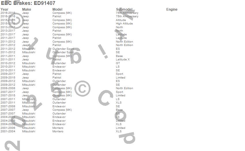 Below is an abbreviated list of applications for the Truck/SUV Extra Duty Brake Pads.