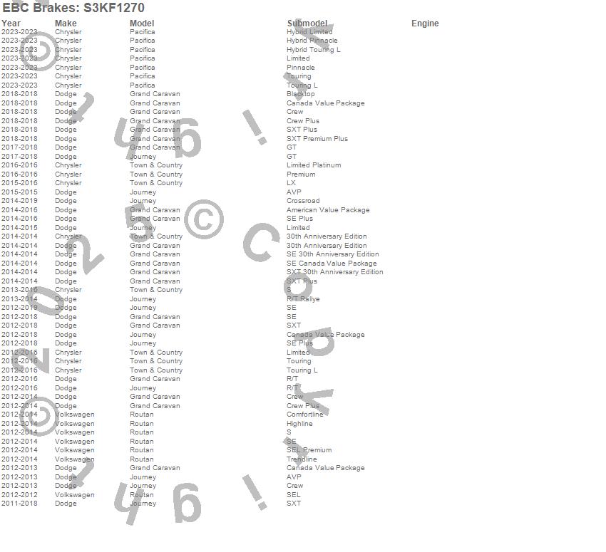 Below is an abbreviated list of applications for the S3 Kits Greenstuff 6000 and GD Rotors Truck/SUV.