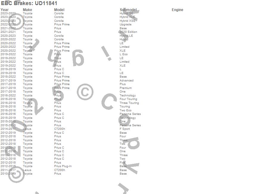 Below is an abbreviated list of applications for the Ultimax OEM Replacement Brake Pads.