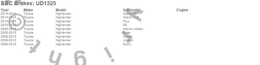 Below is an abbreviated list of applications for the Ultimax OEM Replacement Brake Pads.
