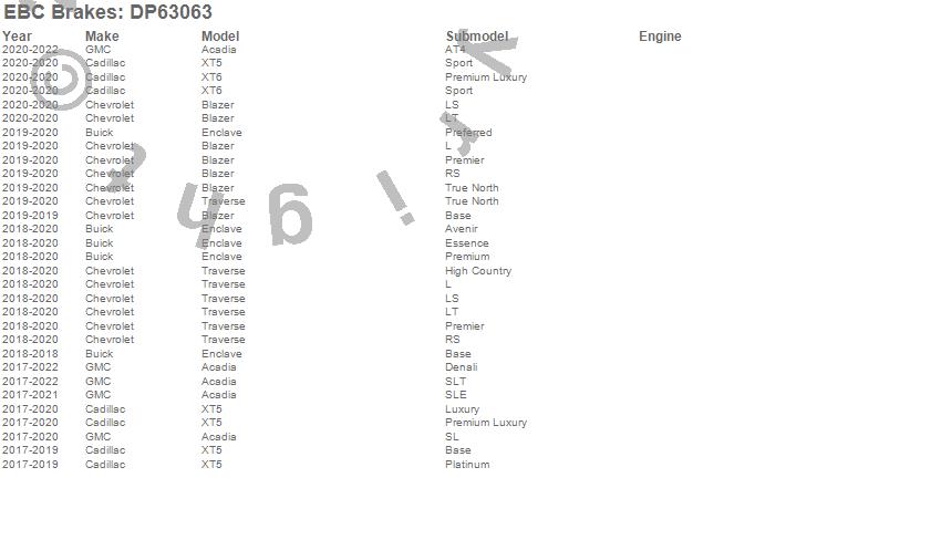 Below is an abbreviated list of applications for the 6000 Series Greenstuff Truck/SUV Brakes Disc Pads.