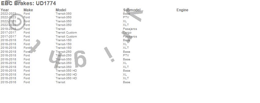 EBC Brakes UD1774 Ultimax OEM Replacement Brake Pads FMSI Pad No. D1774 - Vented - 308mm Dia. - 56mm Height - 33mm Thick - Pad Dimensions: 171.8 x 66 x 16.6mm