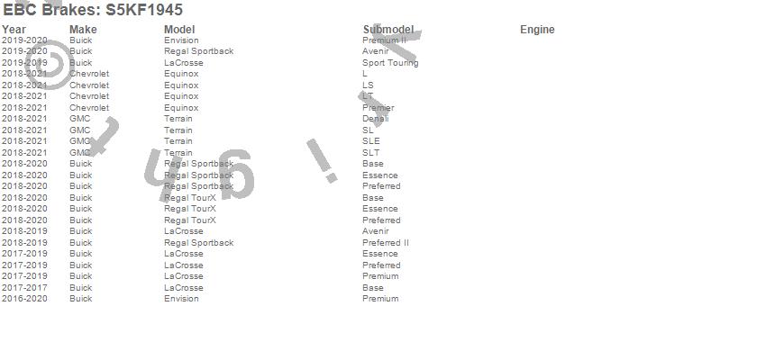 Below is an abbreviated list of applications for the S5 Kits Yellowstuff And GD Rotors.