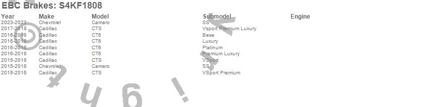 Below is an abbreviated list of applications for the S4 Kits Redstuff and USR Rotor.