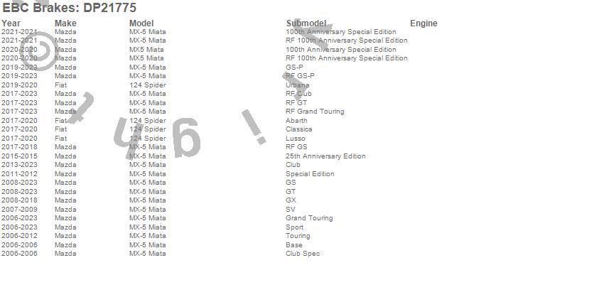 Below is an abbreviated list of applications for the Greenstuff 2000 Series Sport Brake Pads.