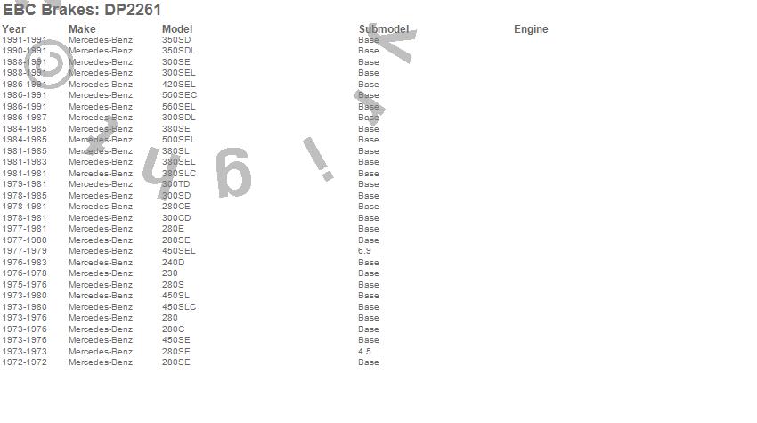 230, 240D, 280, 280C, 280CE, 280E, 280S, 280SE, 300CD, 300SD, 300SDL, 300SE, 300SEL, 300TD, 350SD, 350SDL, 380SE, 380SEL, 380SL, 380SLC