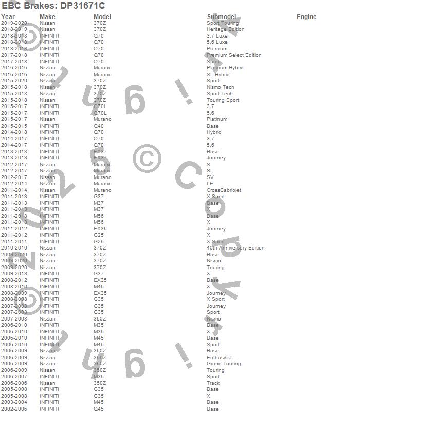 350Z, 370Z, EX35, EX37, G25, G35, G37, M35, M37, M45, M56, Murano, Q40, Q45, Q70, Q70L, INFINITI, Nissan, 2020, 2019