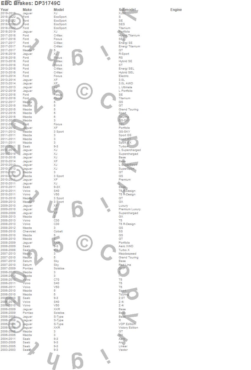 3, 3 Sport, 5, 9-3, 9-3X, C-Max, C30, C70, Cobalt, EcoSport, Focus, S-Type, S40, Sky, Solstice, V50, XF, XJ, XKR, Chevrolet