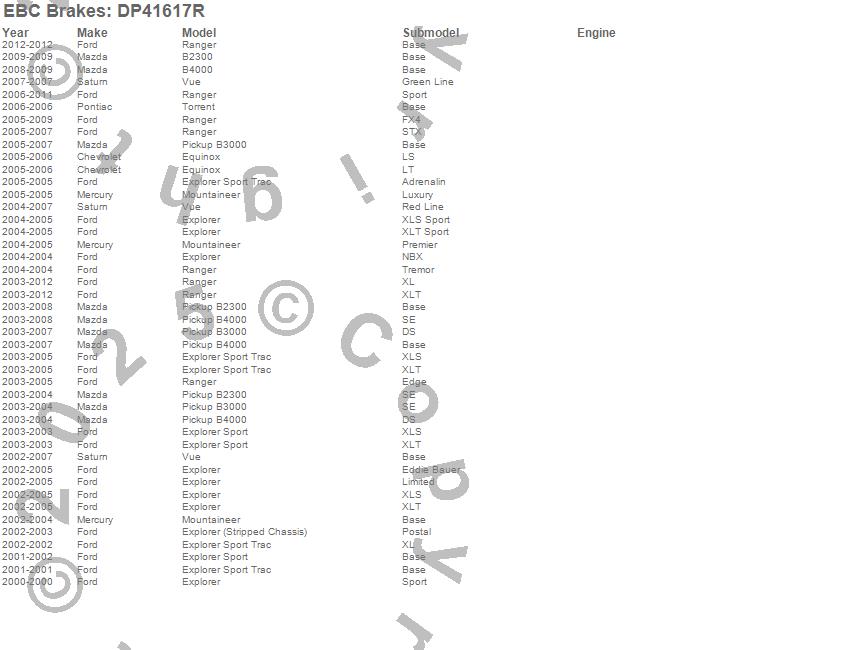 B2300, B3000, B4000, Equinox, Explorer, Explorer (Stripped Chassis), Explorer Sport, Explorer Sport Trac, Mountaineer, Ranger, Torrent, Vue, Chevrolet, Ford, Mazda, Mercury, Pontiac, Saturn, 2012, 2011