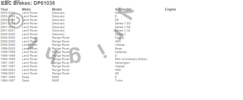 9000, Discovery, Range Rover, Land Rover, Saab, 2004, 2003, 2002, 2001, 2000, 1999, 1998, 1997, 1996, 1989, 1988, 1987, 1986