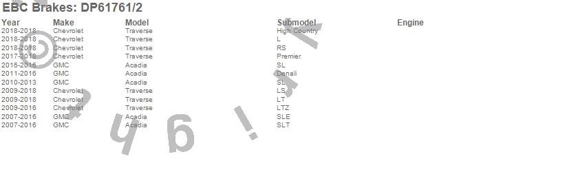 Below is an abbreviated list of applications for the 6000 Series Greenstuff Truck/SUV Brakes Disc Pads.
