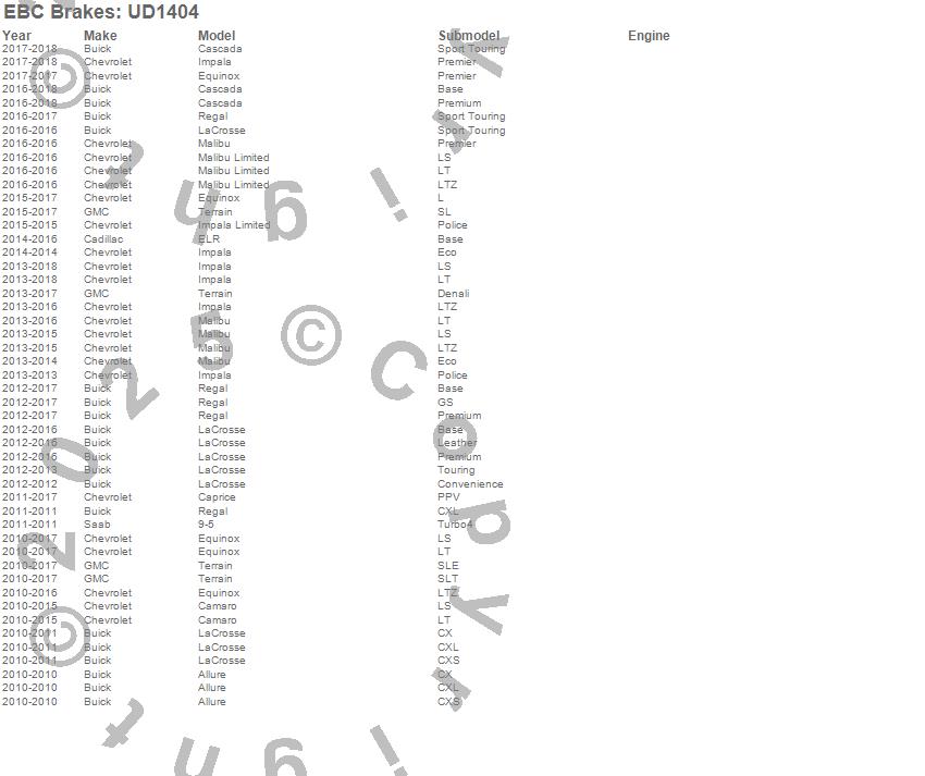 Below is an abbreviated list of applications for the Ultimax OEM Replacement Brake Pads.