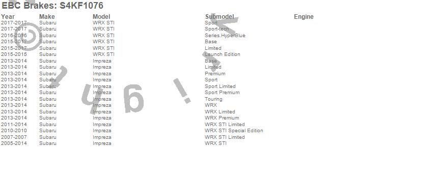 Below is an abbreviated list of applications for the S4 Kits Redstuff and USR Rotor.