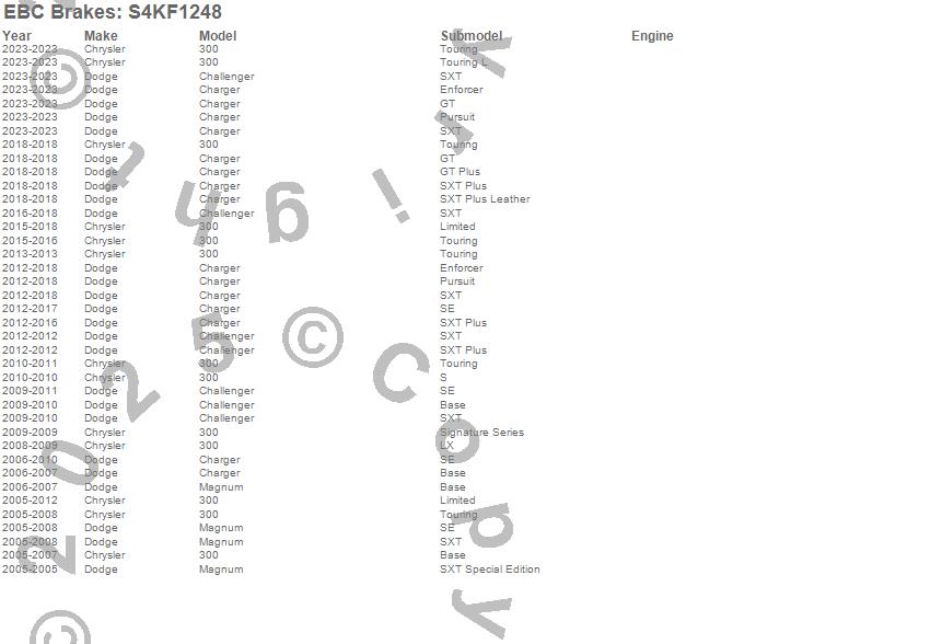 Below is an abbreviated list of applications for the S4 Kits Redstuff and USR Rotor.
