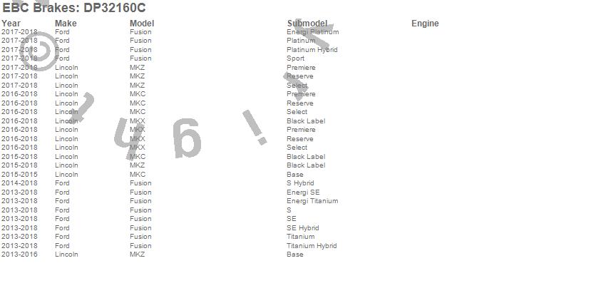 EBC Brakes DP32160C Redstuff Ceramic Low Dust Brake Pads FMSI Pad No. D1665 - Solid - 315mm Dia. - 51mm Height - 11mm Thick - 63.6mm Center Hole Dia. - Pad Dimensions: 123.2 x 55 x 15mm