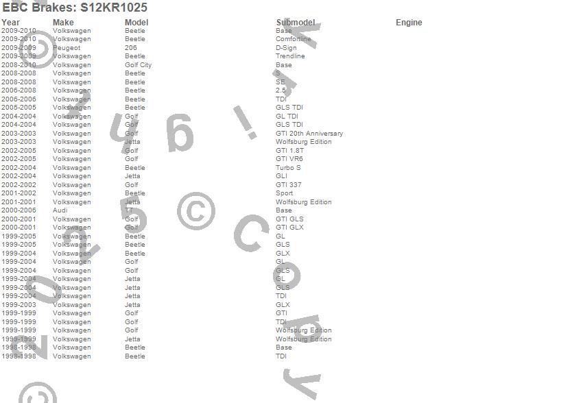 Below is an abbreviated list of applications for the S12 Kits Redstuff and RK Rotors.