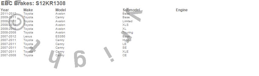 Below is an abbreviated list of applications for the S12 Kits Redstuff and RK Rotors.