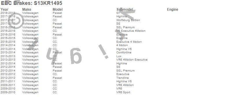 Below is an abbreviated list of applications for the S13 Kits Yellowstuff and RK Rotors.