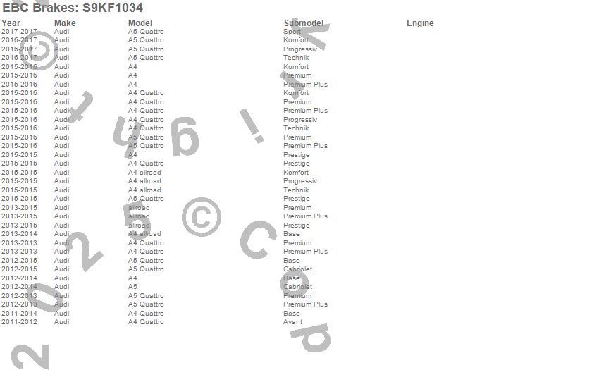 Below is an abbreviated list of applications for the S9 Kits Yellowstuff and USR Rotors.