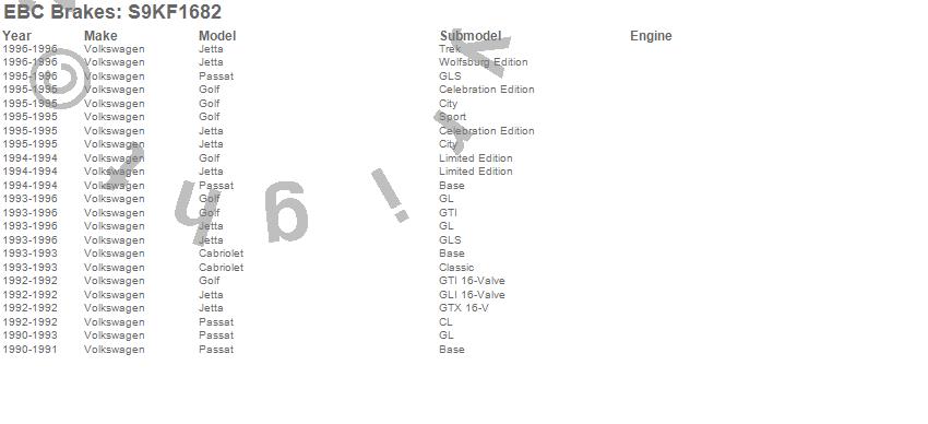 Below is an abbreviated list of applications for the S9 Kits Yellowstuff and USR Rotors.