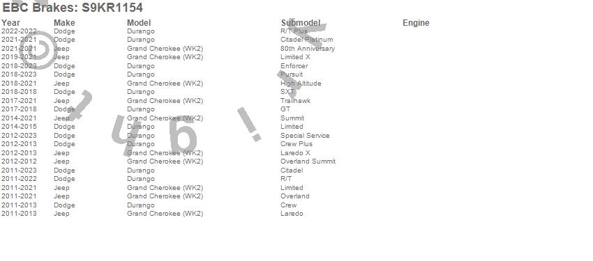 Below is an abbreviated list of applications for the S9 Kits Yellowstuff and USR Rotors.