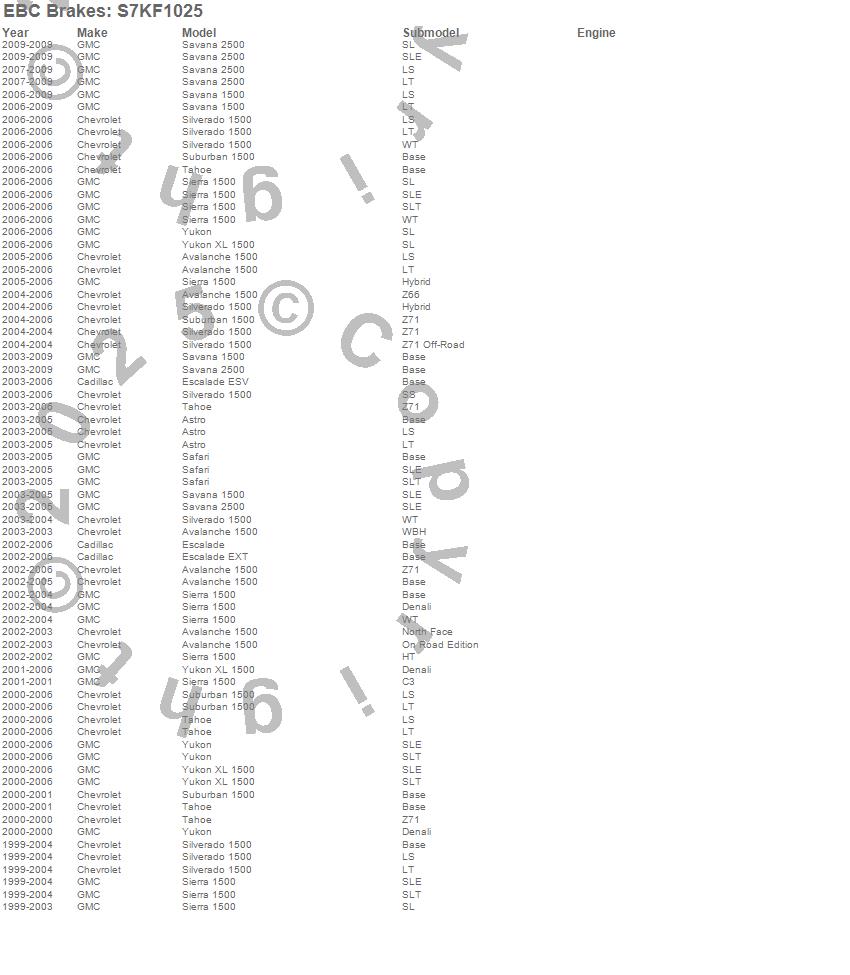 Below is an abbreviated list of applications for the S7 Kits Orangestuff and BSD Rotors.