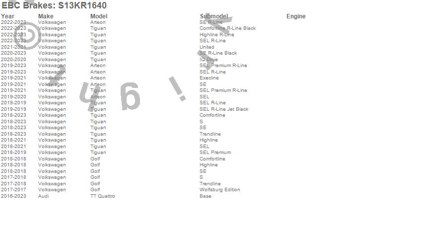 Below is an abbreviated list of applications for the S13 Kits Yellowstuff and RK Rotors.