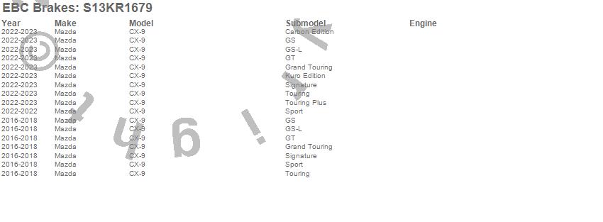 Below is an abbreviated list of applications for the S13 Kits Yellowstuff and RK Rotors.