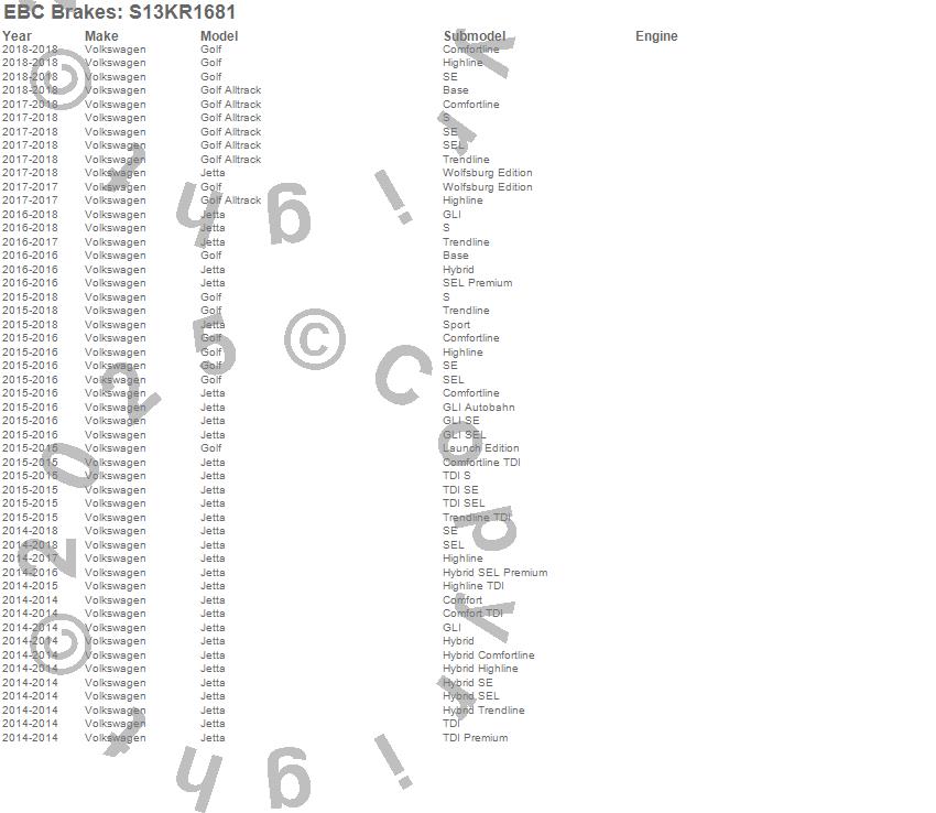 Below is an abbreviated list of applications for the S13 Kits Yellowstuff and RK Rotors.