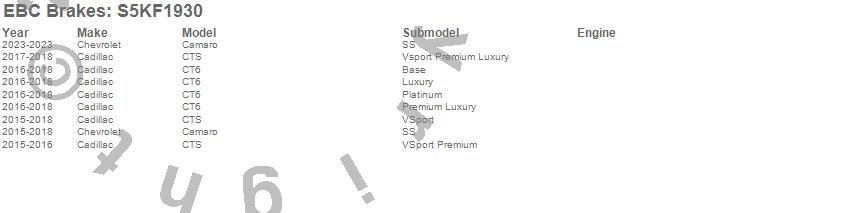 Below is an abbreviated list of applications for the S5 Kits Yellowstuff And GD Rotors.