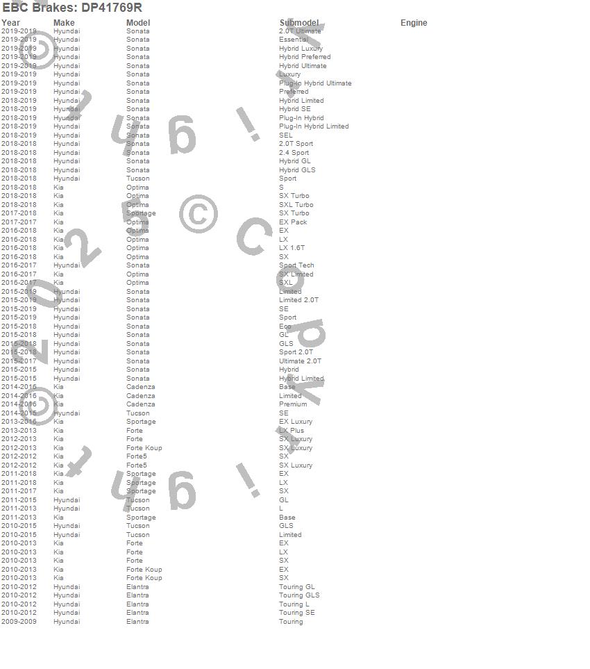 Below is an abbreviated list of applications for the Yellowstuff Street And Track Brake Pads.