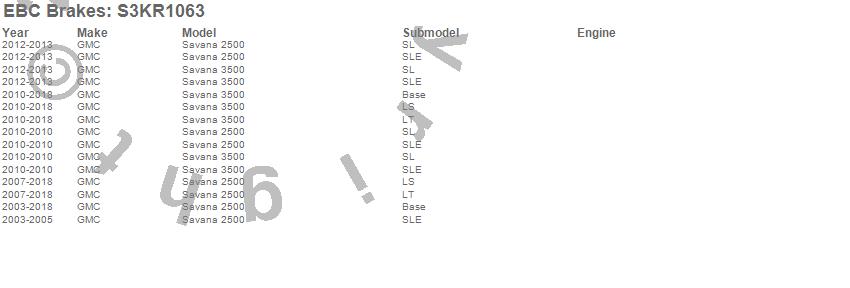 Below is an abbreviated list of applications for the S3 Kits Greenstuff 6000 and GD Rotors Truck/SUV.