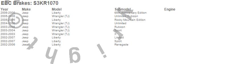 Below is an abbreviated list of applications for the S3 Kits Greenstuff 6000 and GD Rotors Truck/SUV.